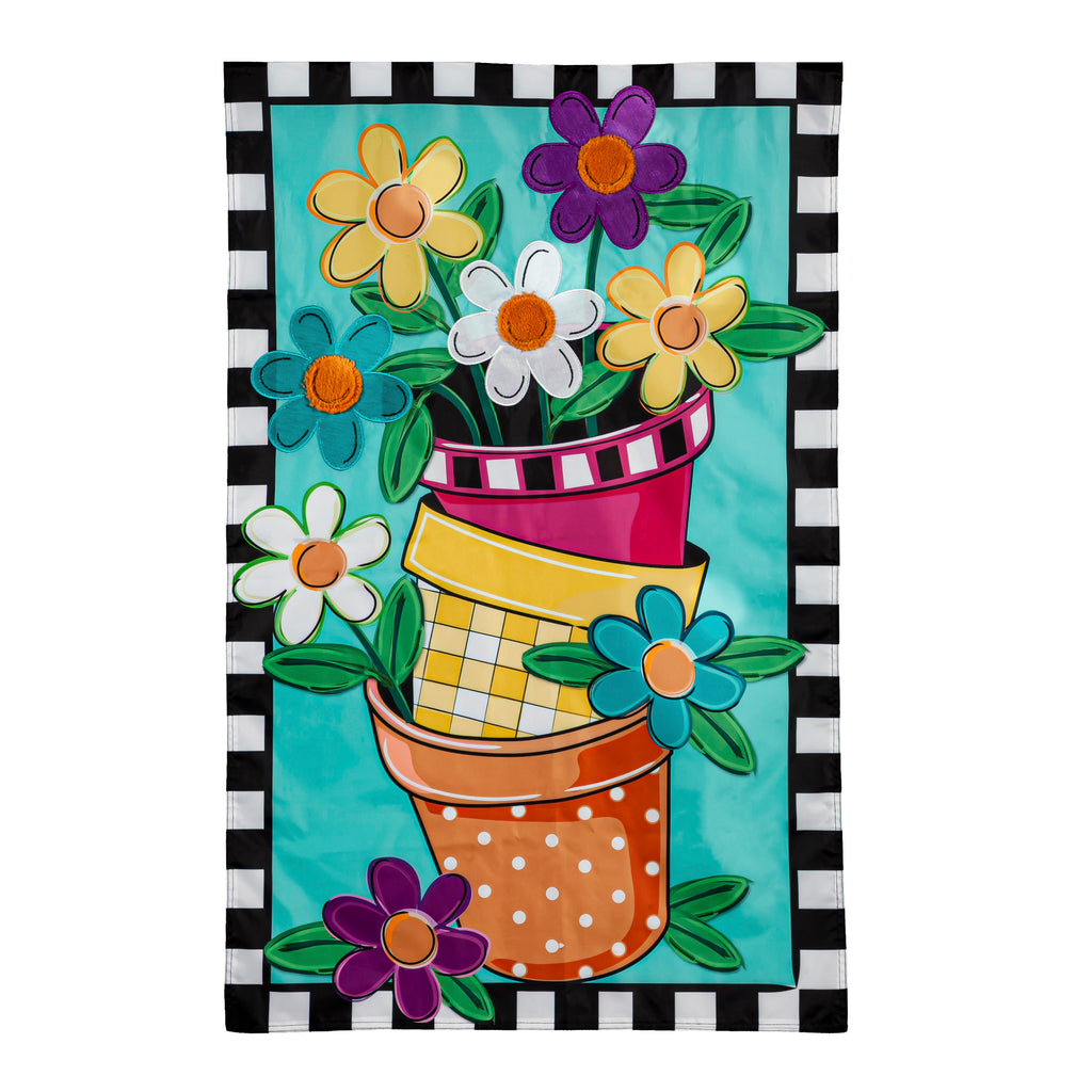 Each applique flag is made of durable 310 denier nylon to ensure the design will withstand all types of weather. The applique process combines pieces of fade-resistant fabric with tight, detailed stitching to create a mosaic effect. The soft yet heavyweig
