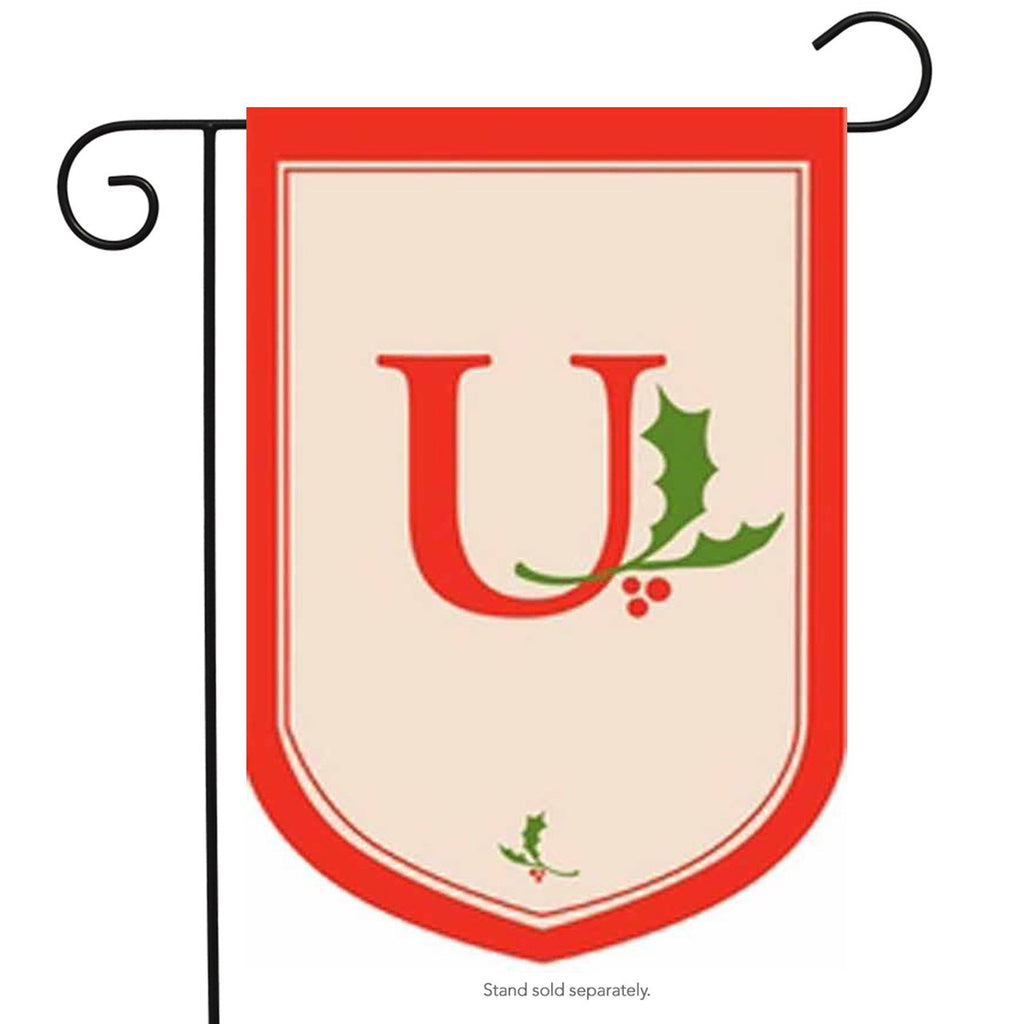 Enhance your garden's festive spirit with this beautifully crafted holiday monogram applique flag. Designed to capture attention, this flag measures 12.5 inches in length and 18 inches in height, making it a perfect fit for any standard garden flagpole. The applique design features intricate stitching that highlights the elegant letter 'U', making it an ideal personalized touch for your outdoor décor. Made from durable materials, it withstands various weather conditions, ensuring long-lasting display through the holiday season. The classic holiday colors and timeless design make it a versatile piece for any garden setting.