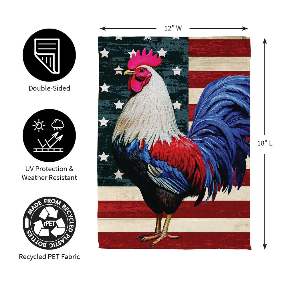 Celebrate your patriotic spirit with the All American Rooster Suede Garden Flag. This vibrant flag measures 18.0 x 12.5 inches and is crafted from premium suede, offering a soft touch and rich color palette. Featuring a majestic rooster against a backdrop of stars and stripes, it’s perfect for adding a splash of Americana to your garden or yard. Designed for durability, this flag withstands the elements, ensuring lasting beauty throughout the seasons. An ideal choice for holidays or everyday display, it brings charm and color to any outdoor space.