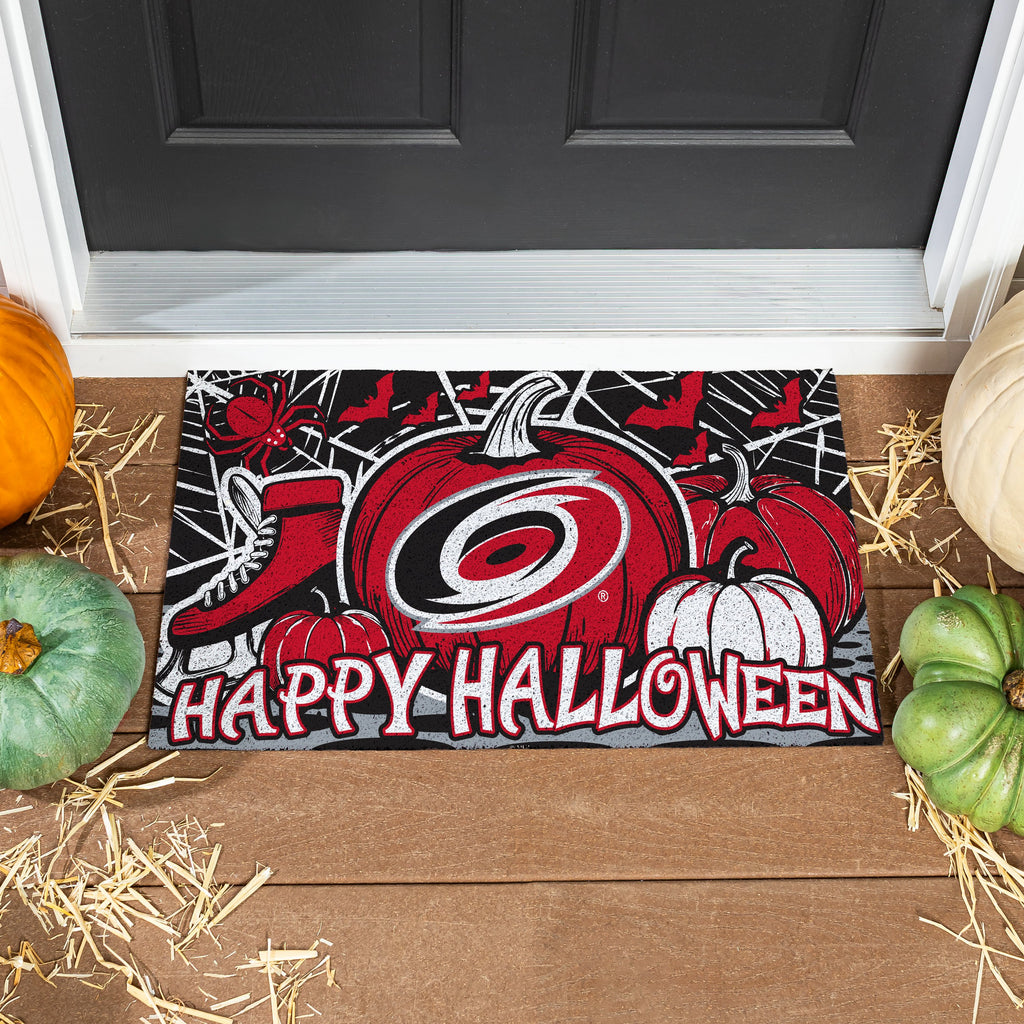 Spice up your Halloween décor with the Carolina Hurricanes PVC Mat, measuring 28" x 16". This vibrant mat features a festive design with bold red, black, and white colors, perfect for welcoming trick-or-treaters or fans alike. Made from durable PVC material, it withstands the elements while maintaining a crisp and colorful appearance. Its non-slip backing ensures safety and stability, making it ideal for high-traffic areas. Whether placed at your front door or inside your entryway, this mat adds a spirited touch to your home during the spooky season.