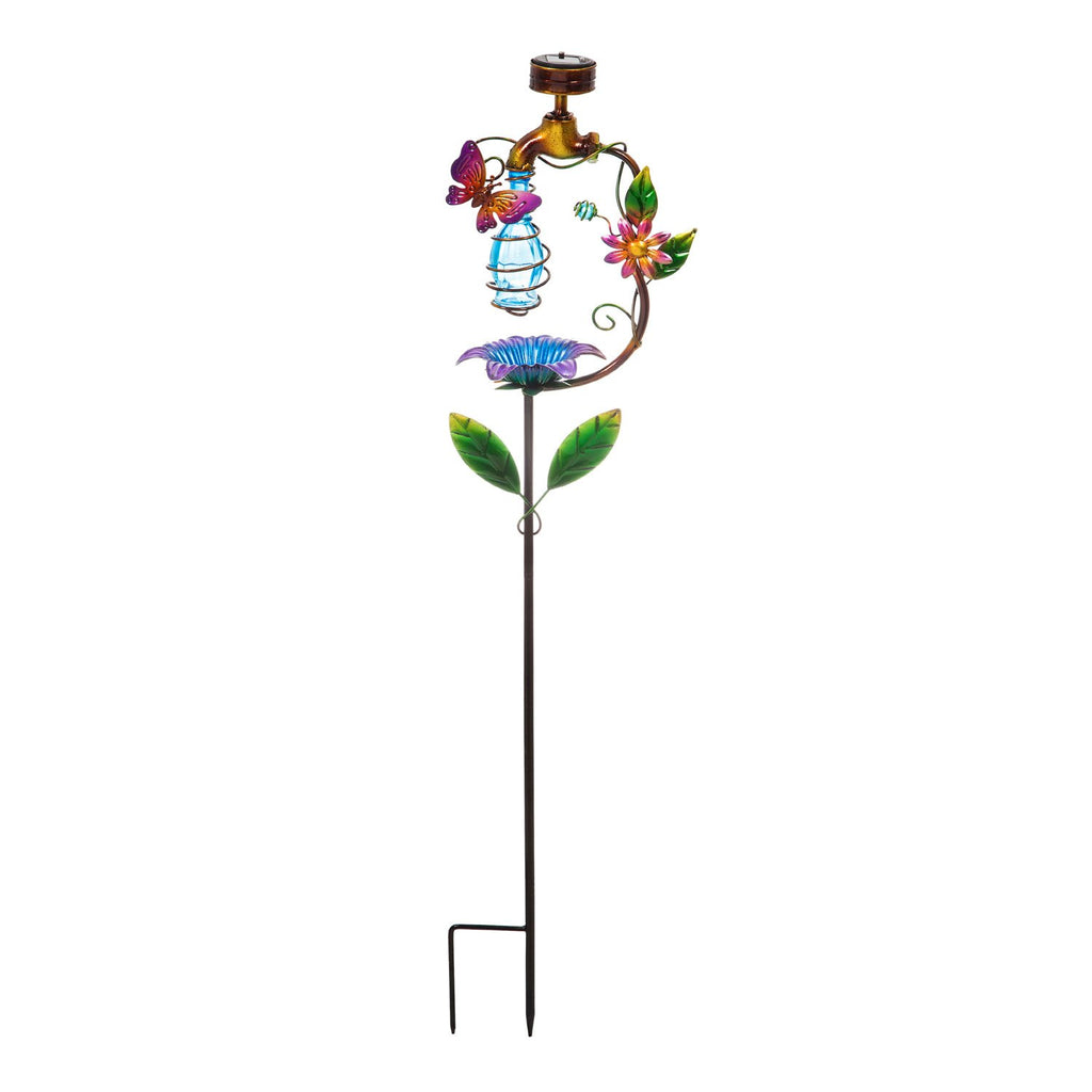 Enhance your garden with this solar-powered garden stake featuring a whimsical butterfly and flower design. Standing at 34.5 inches, it's an eye-catching addition to any outdoor space.