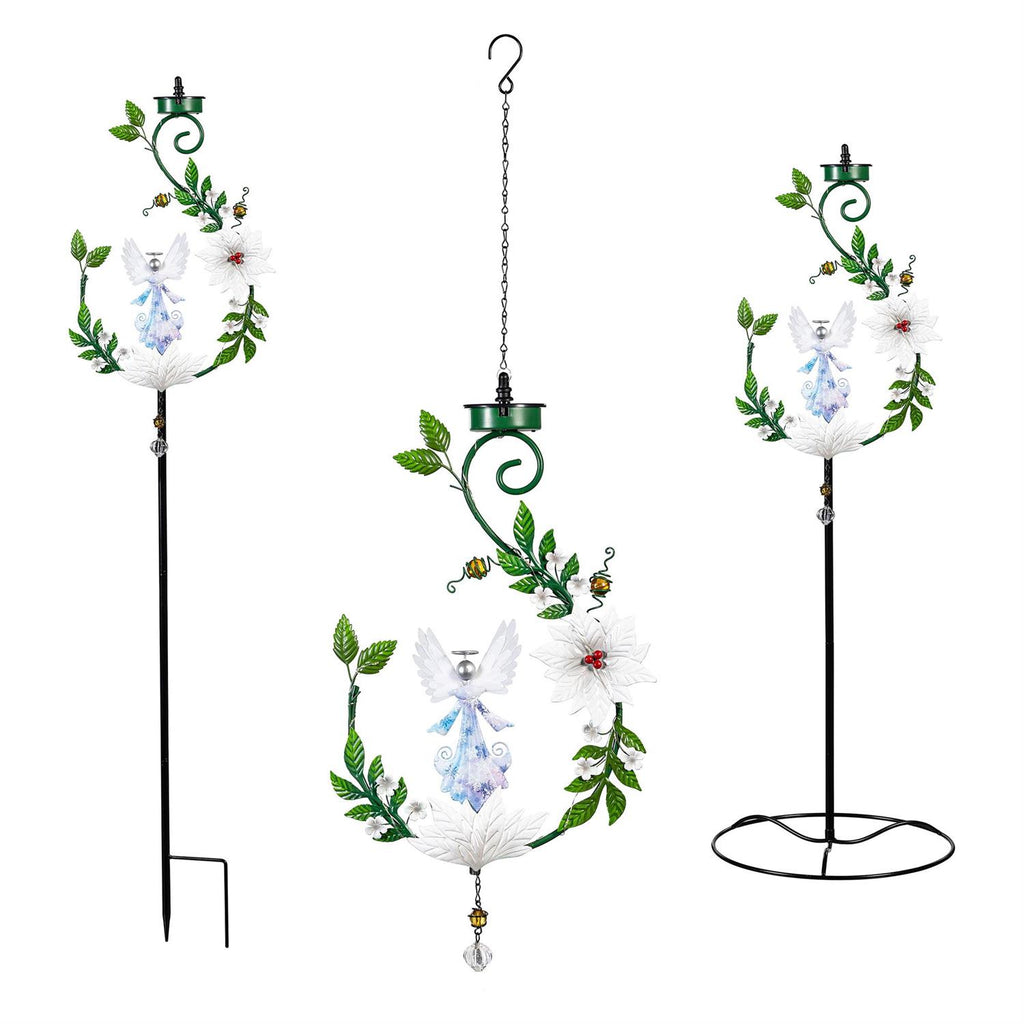 Transform your garden into a serene sanctuary with the Season to Sparkle 4-in-1 Solar Garden Stake. Standing at 48 inches, this elegant angel-themed stake features a stunning display of lights powered by solar energy, making it a perfect addition to your outdoor decor. Crafted with intricate details, this garden stake captures the essence of tranquility and beauty, featuring a harmonious blend of metal leaves and flowers. Ideal for any season, it illuminates your garden path or flower bed with a gentle, welcoming glow. Enhance your outdoor ambiance effortlessly with this captivating garden art piece.