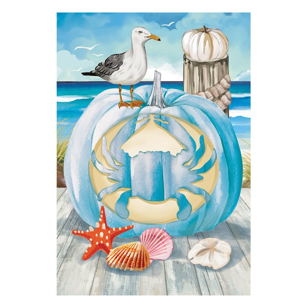 Celebrate Halloween with the Crab O' Lantern Suede House Flag, featuring a whimsical coastal design. This flag adds a touch of seaside charm to your outdoor decor.