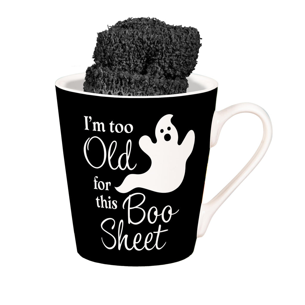 - Includes a 12oz ceramic cup with a playful ghost and text design.