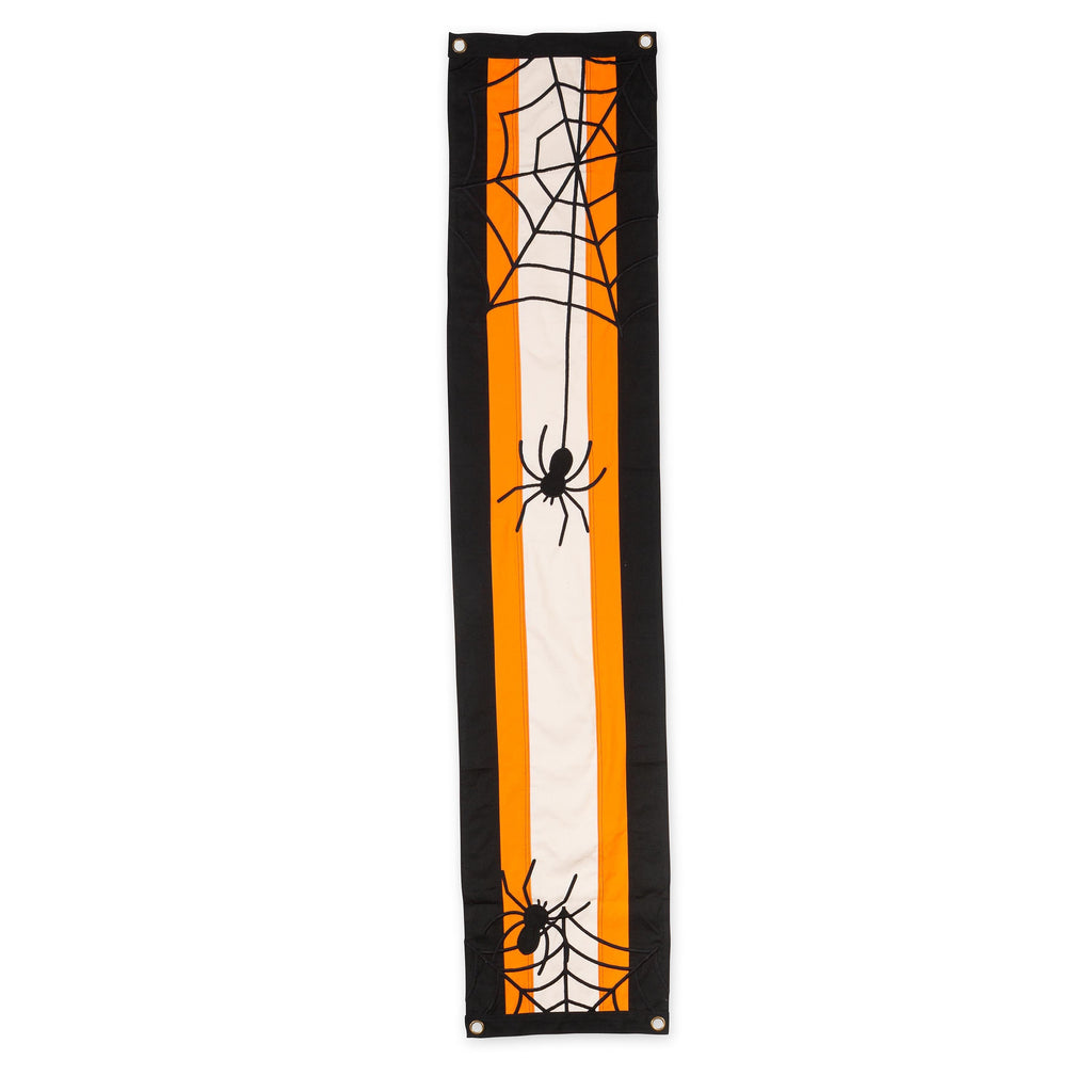 Add a spooky touch to your Halloween decor with this Spider Pillar Bunting, featuring striking spider and web designs.