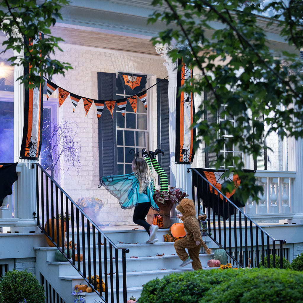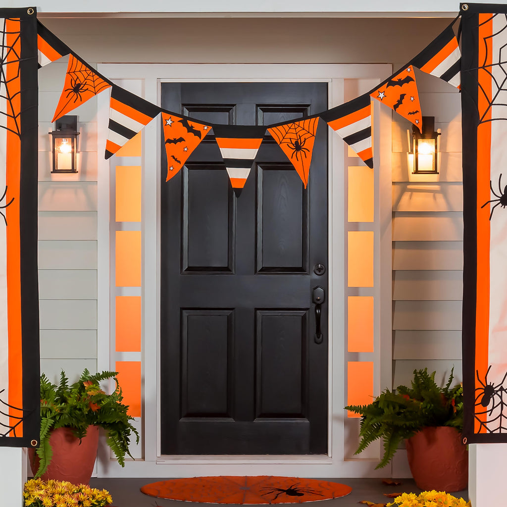 Add a festive touch to your home with this vibrant Halloween pennant. Perfect for creating a spooky atmosphere, it features a classic black and orange color scheme with playful Halloween motifs.