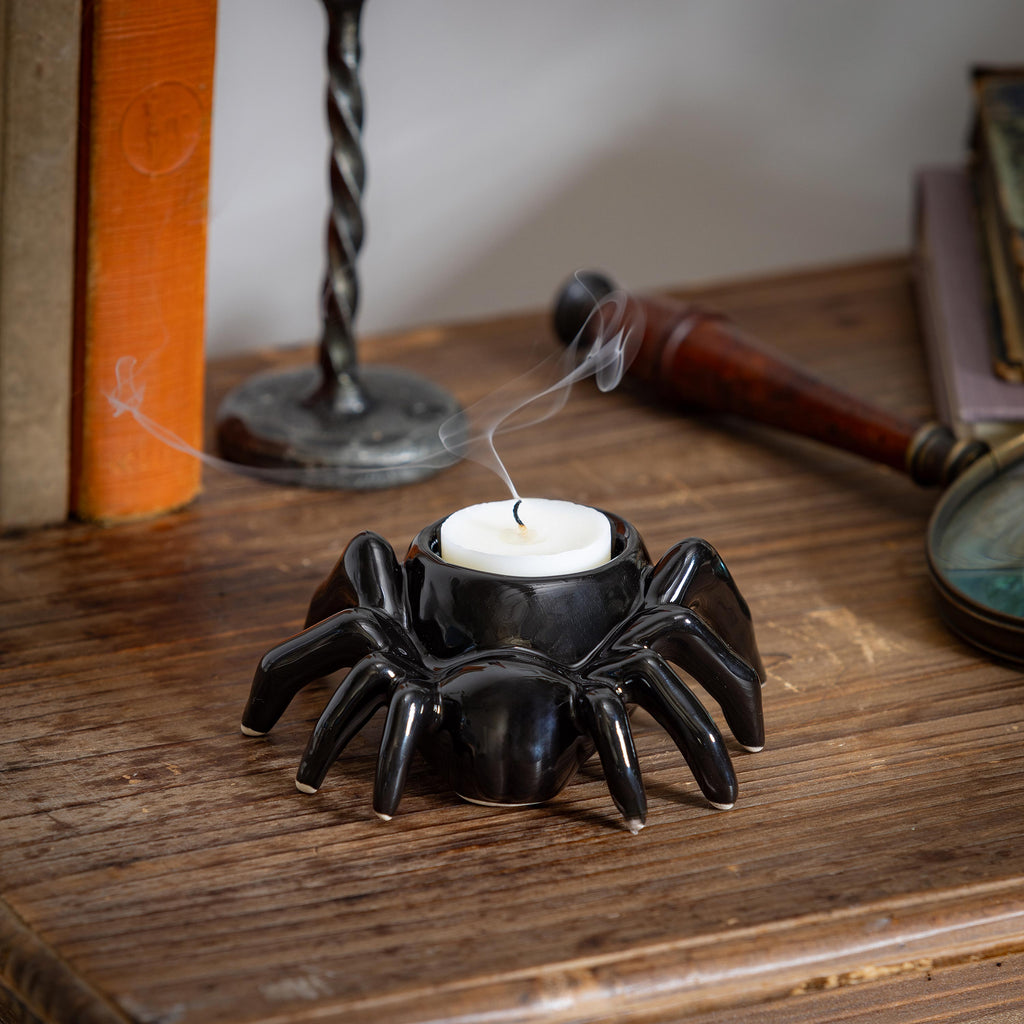 Add a spooky touch to your home with this Ceramic Halloween Spider Tealight Candle Holder, perfect for Halloween decor.