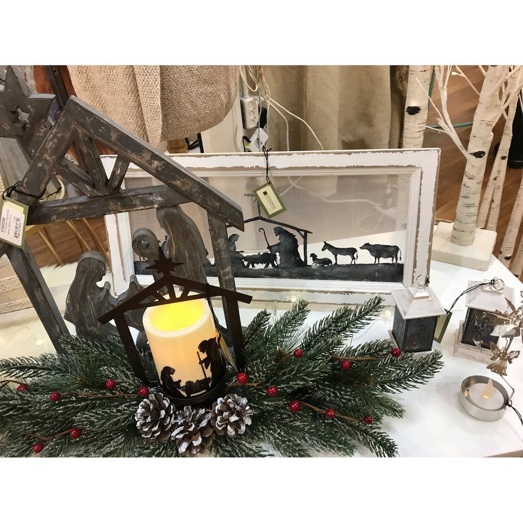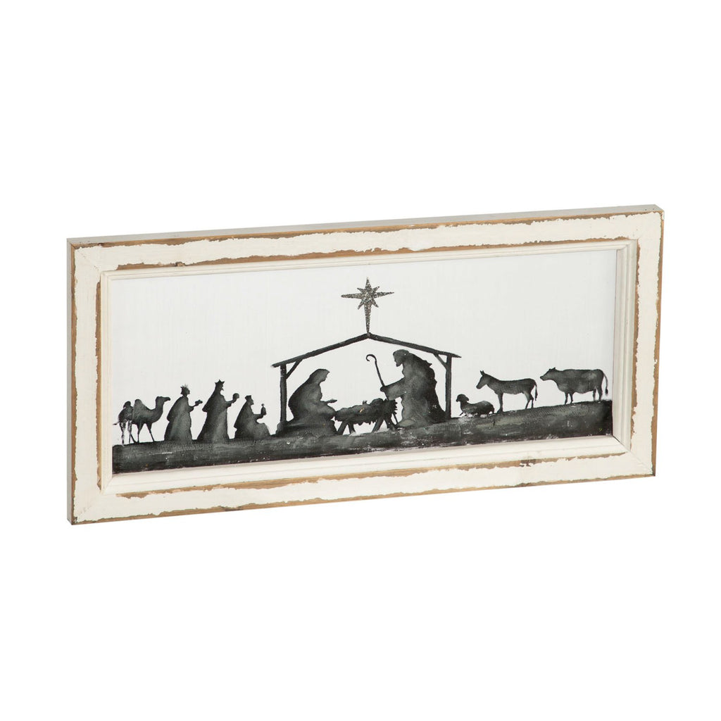 Celebrate the season with this hand-painted Nativity Scene wall decor, featuring a detailed silhouette design within a rustic wooden frame. Perfect for adding a festive touch to any room.