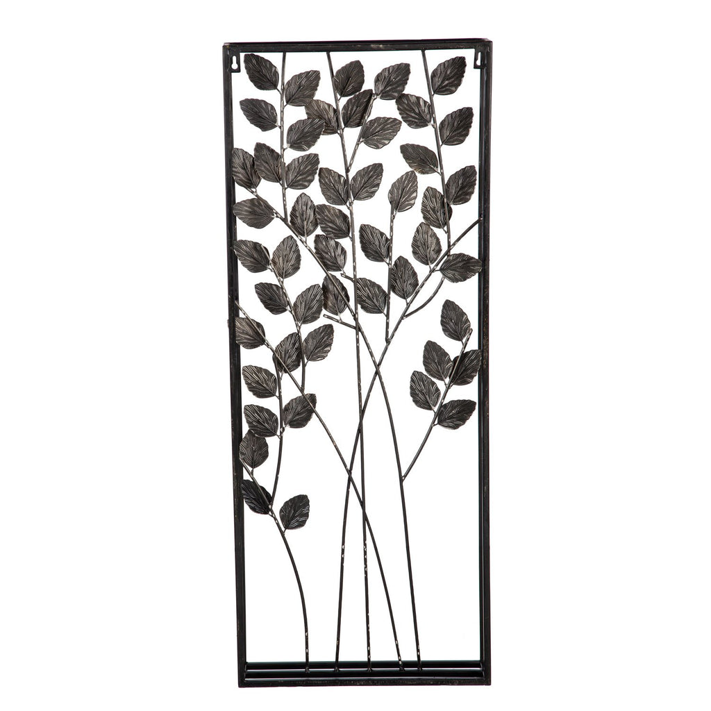 Embossed Gold Metal Leaf and Branches with Black Frame Wall Decor