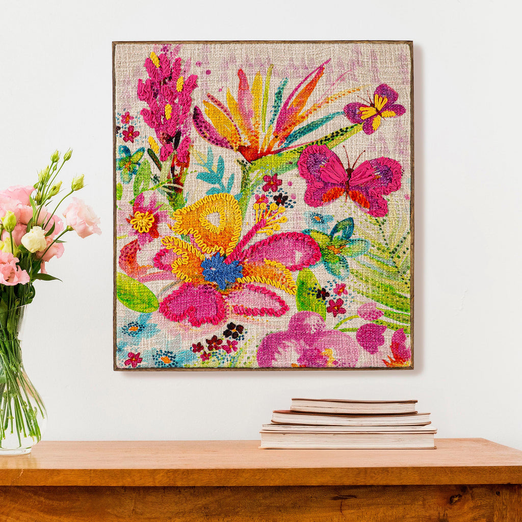 Bring the vibrant colors of nature into your home with this Textile Pastels of Nature Wall Decor. This stunning piece features a lively floral design, perfect for adding a splash of color to any room.