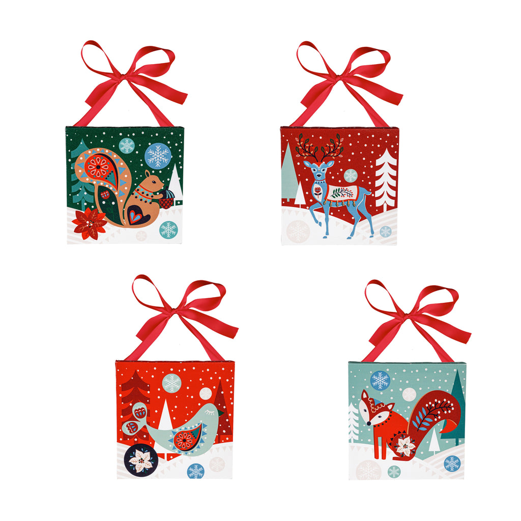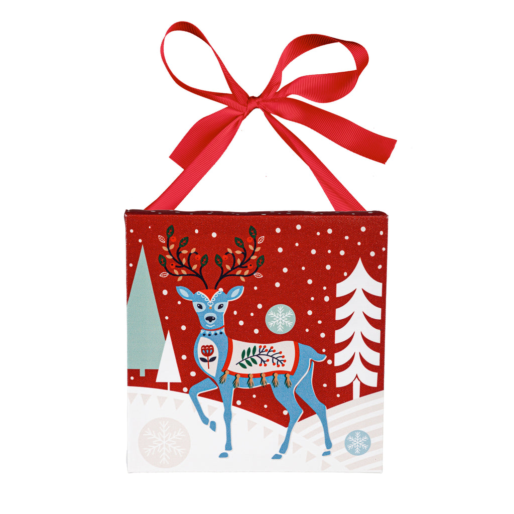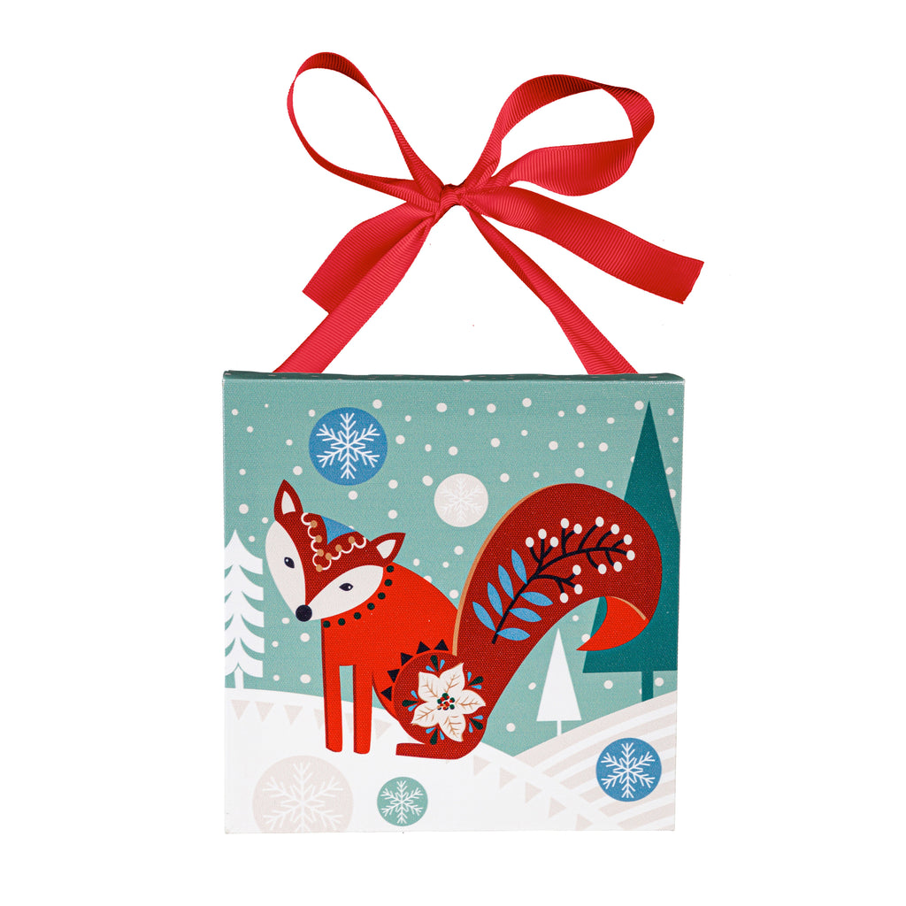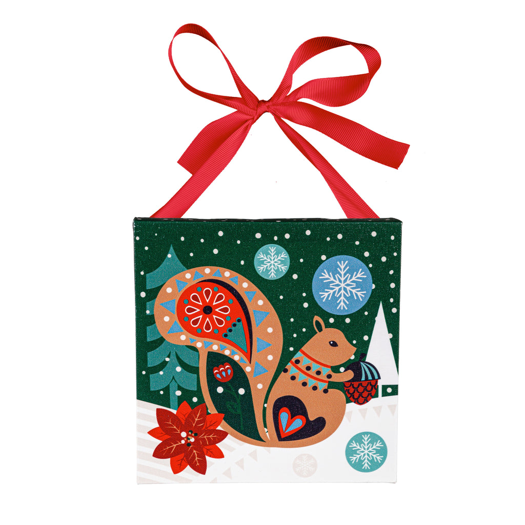 8" H x 8" L Mini Canvas with Plaid Ribbon,Holiday Animals