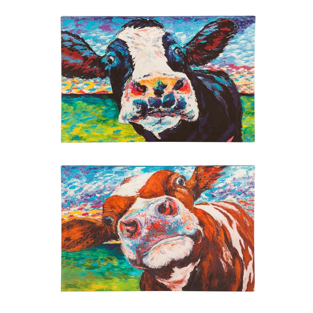 Petal & Plow Outdoor Wall Decor, Outdoor Canvas, Curious Cow, 36" L x 24" H, Set of 2