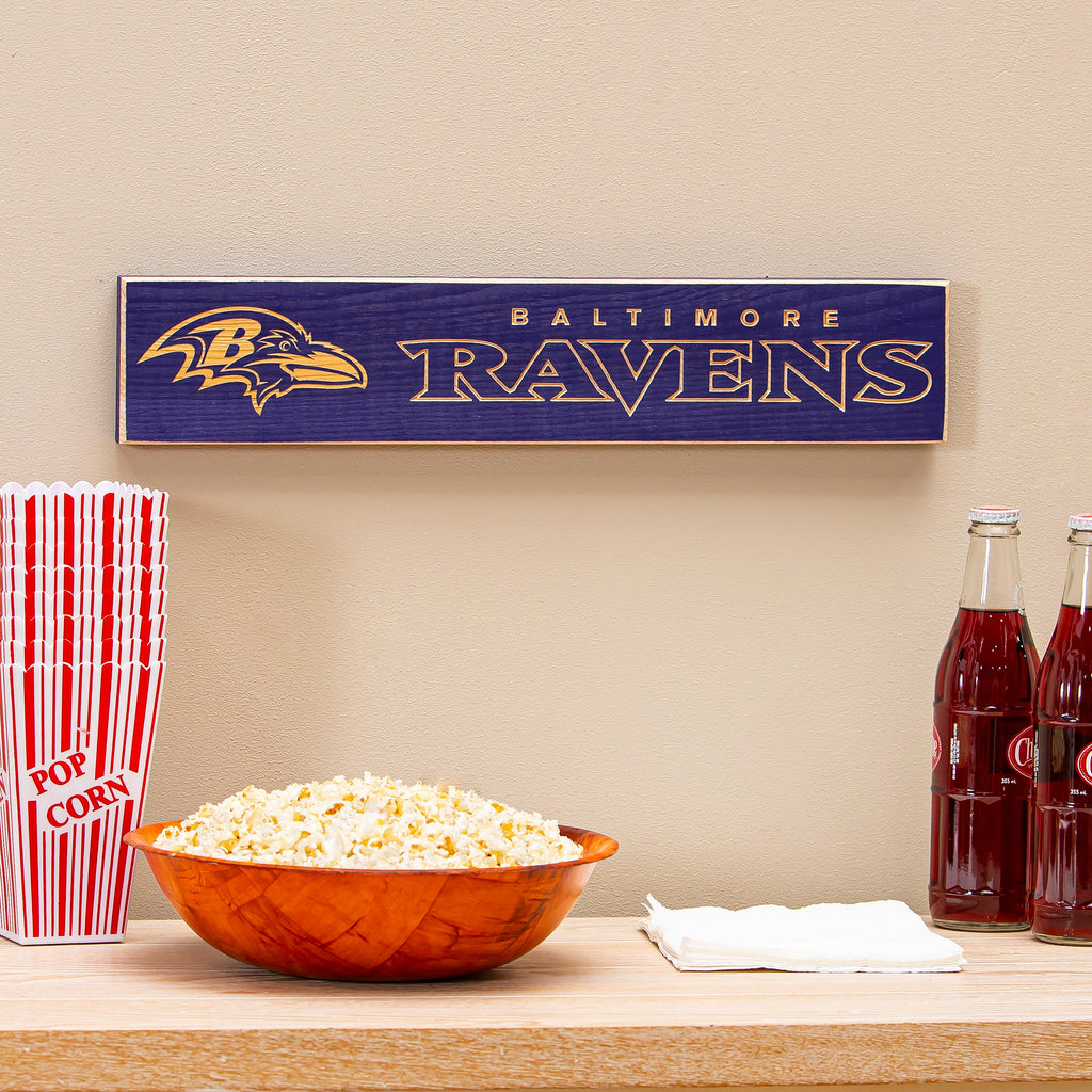 Show your team pride with this Baltimore Ravens engraved wood sign, perfect for any fan's home decor. Featuring a sleek design, it brings a sporty touch to your wall space.