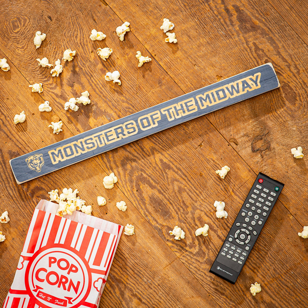 Celebrate your fandom with the Chicago Bears Engraved Wood Sign, featuring the iconic 'Monsters of the Midway' phrase. Perfect for any fan's home decor collection.