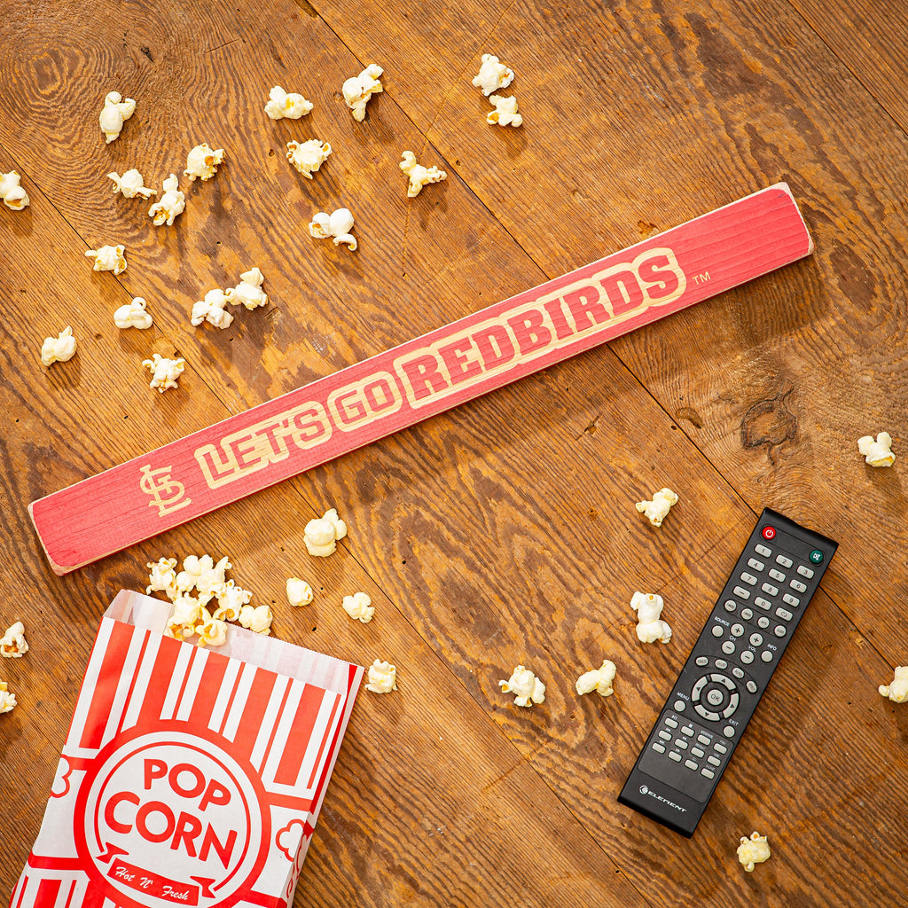 Show your support for the St. Louis Cardinals with this engraved wood sign, featuring a bold 'Let's Go Redbirds' design. Perfect for adding a sporty touch to your door or outdoor area.