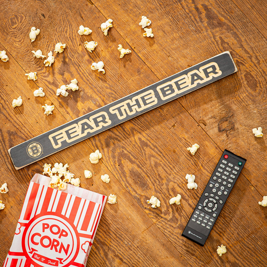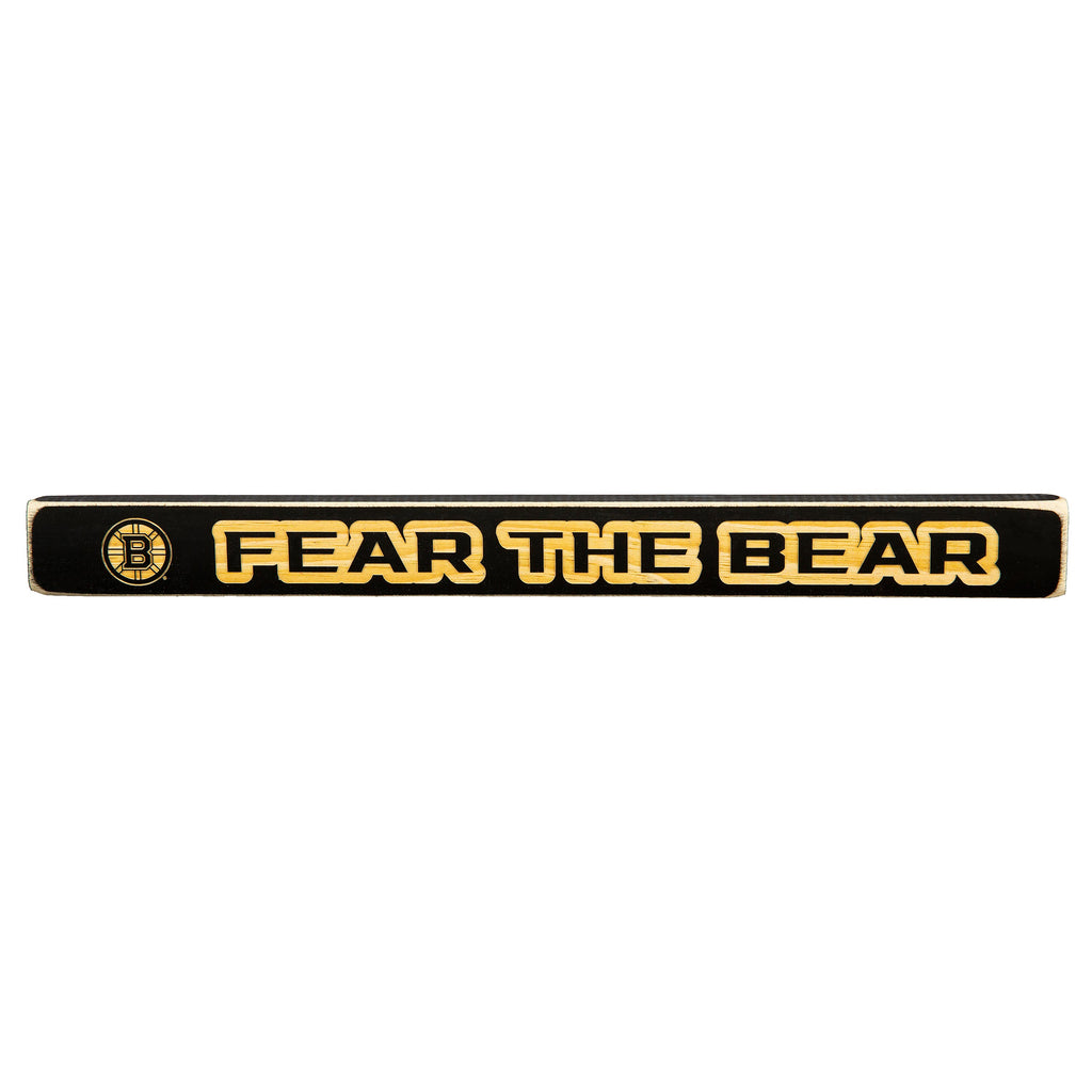 Show your team spirit with this Boston Bruins engraved wood sign, perfect for any fan's home decor. The sleek design features the phrase 'Fear the Bear' in bold lettering.