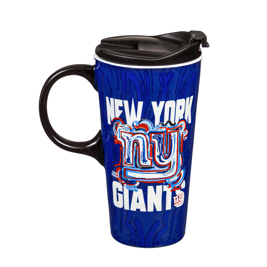 Show off your team pride with this New York Giants travel latte cup, featuring a vibrant design by Justin Patten. Perfect for on-the-go fans, this cup blends style and functionality.