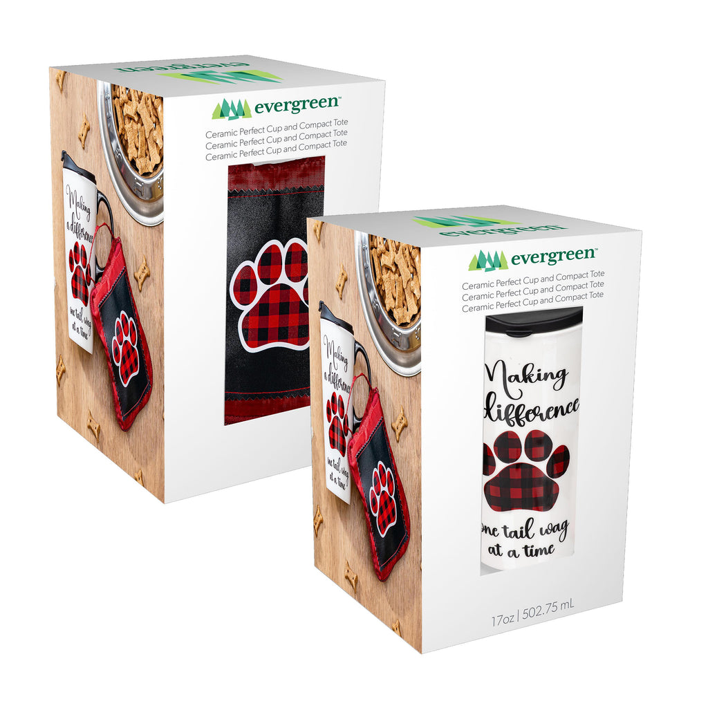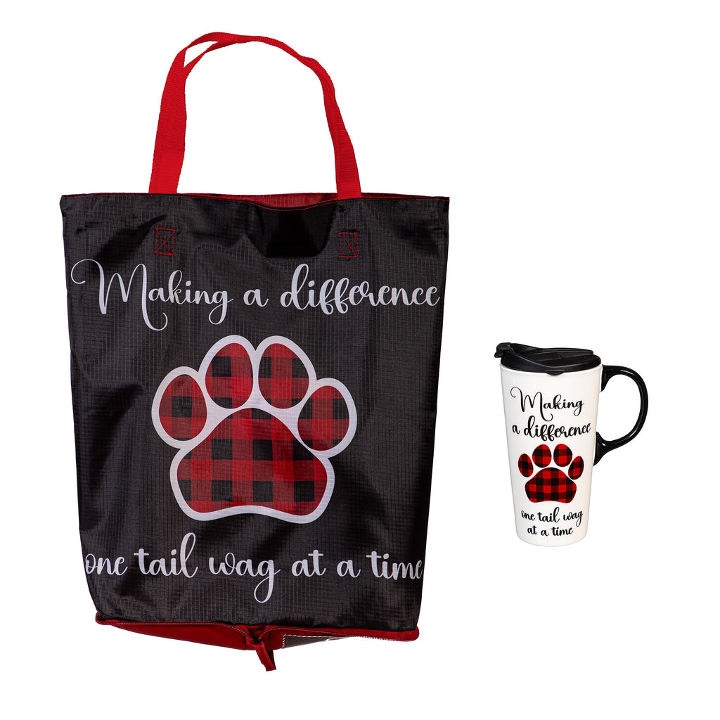 This charming gift set features a 17oz ceramic cup and a compact tote, both adorned with a playful plaid paw design. Perfect for everyday use, it's a thoughtful gift for pet lovers.