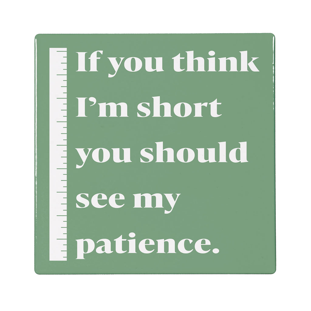 Add a touch of humor to your coffee table with this 'If You Think I'm Short You Should See My Patience' stone coaster. Perfect for everyday use, its durable design protects surfaces while bringing a smile to your face.