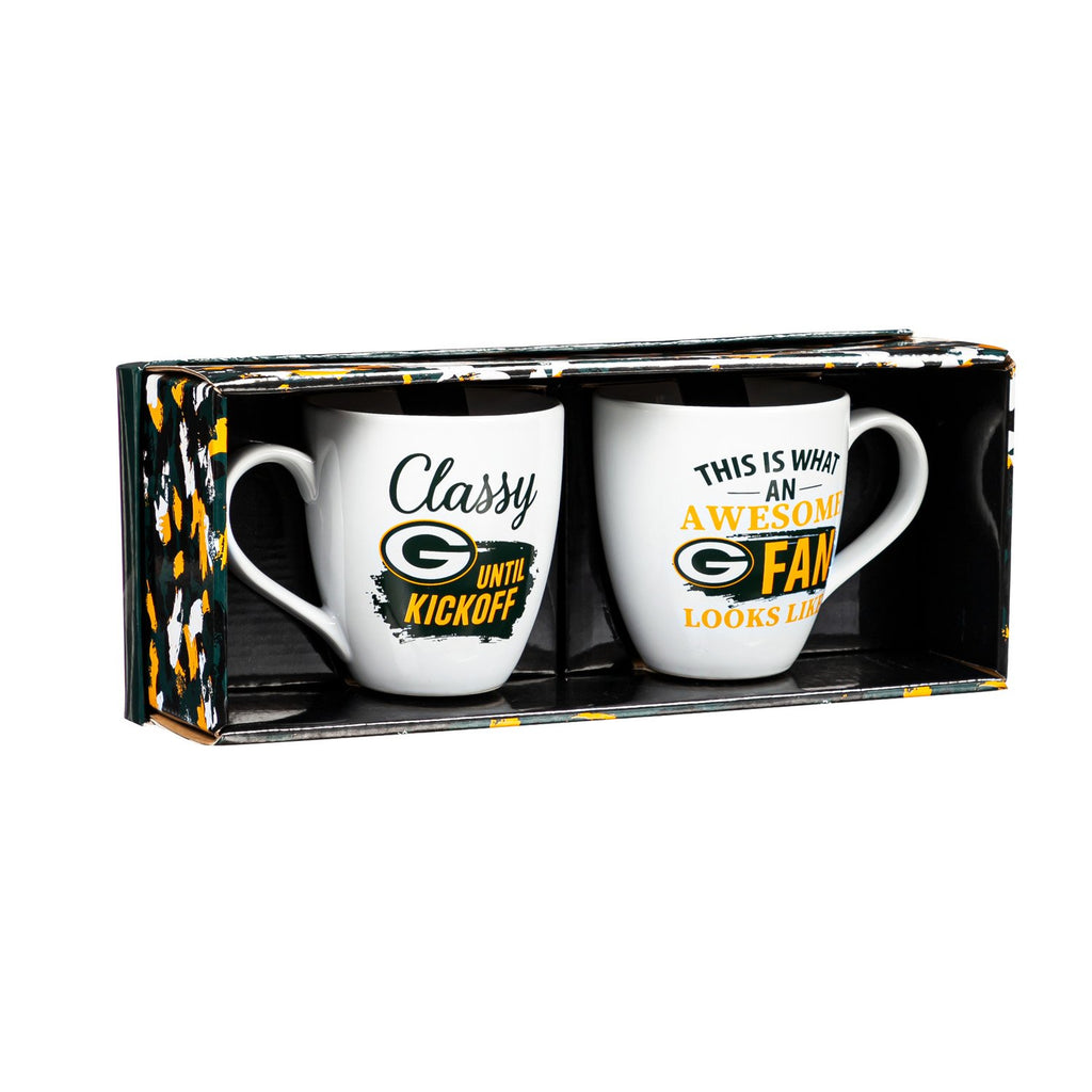This Green Bay Packers ceramic mug set is perfect for dedicated fans who want to enjoy their coffee with team pride. Featuring bold team graphics, these mugs make an excellent gift for any NFL enthusiast.