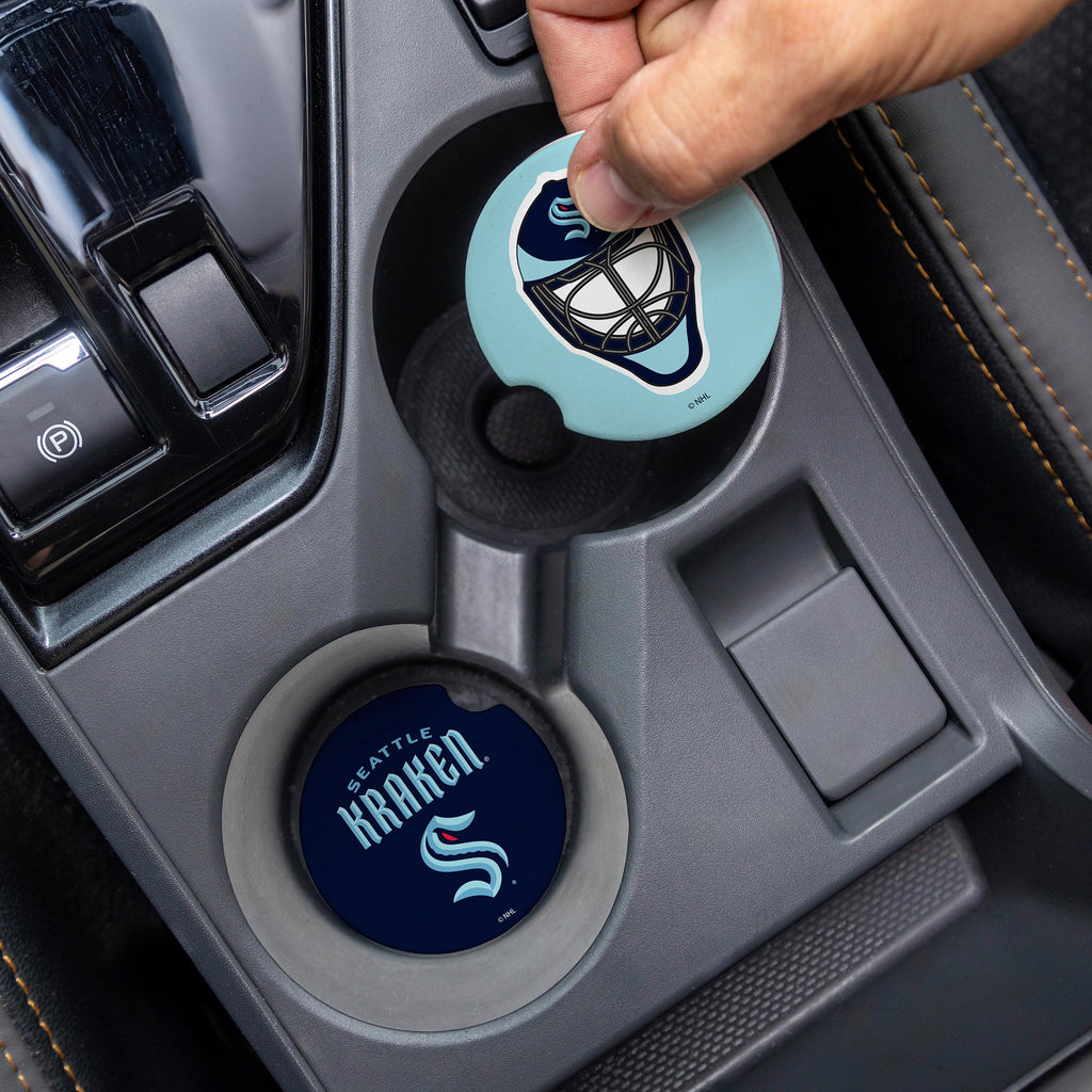 Show off your team pride with this Seattle Kraken Car Coaster Set, featuring two durable and stylish coasters designed to fit most vehicle cup holders.