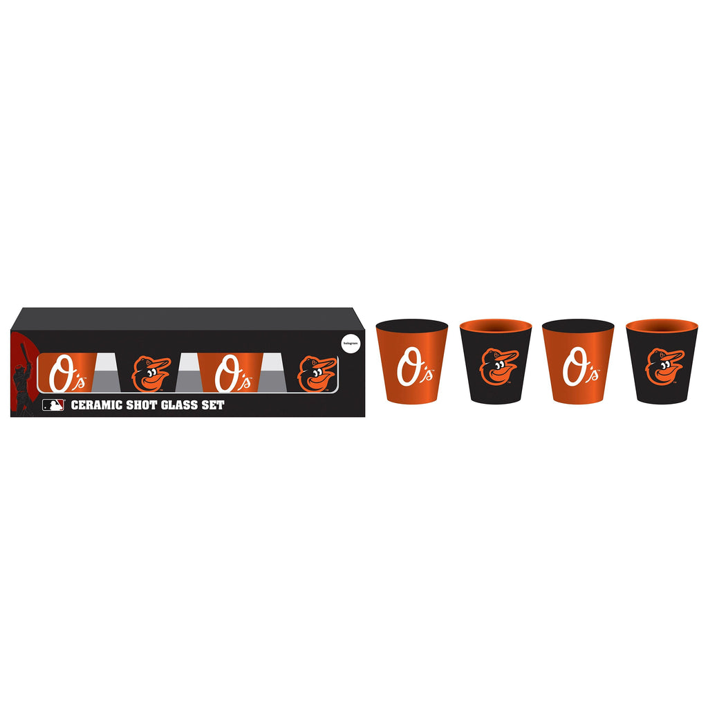 Celebrate your favorite baseball team with this Baltimore Orioles 4-Piece Ceramic 2oz. Cup Set, perfect for game day gatherings and home bars.