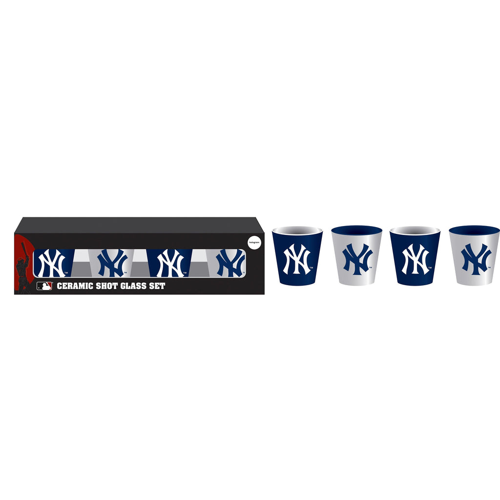 Celebrate your love for the New York Yankees with this 4-piece ceramic shot glass set, perfect for any sports fan. Each cup features the iconic Yankees logo in a sleek design.