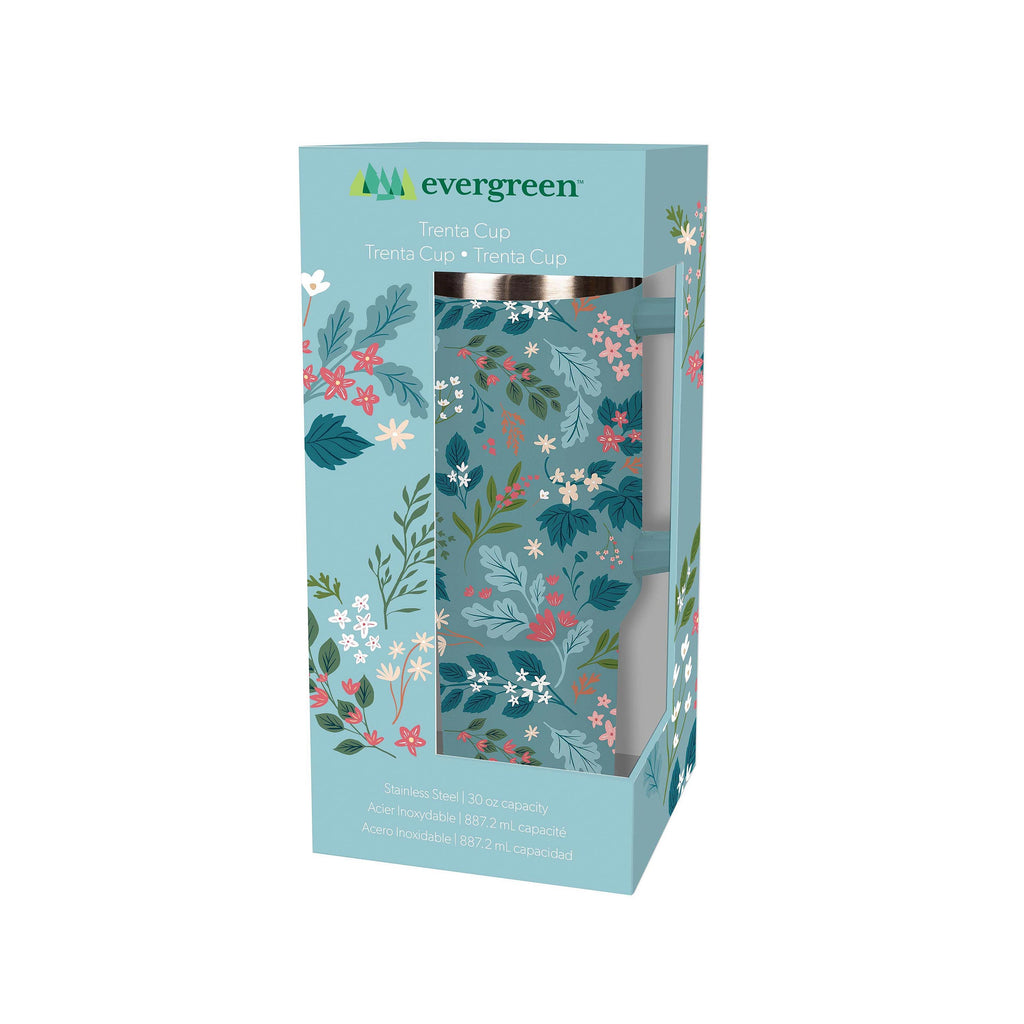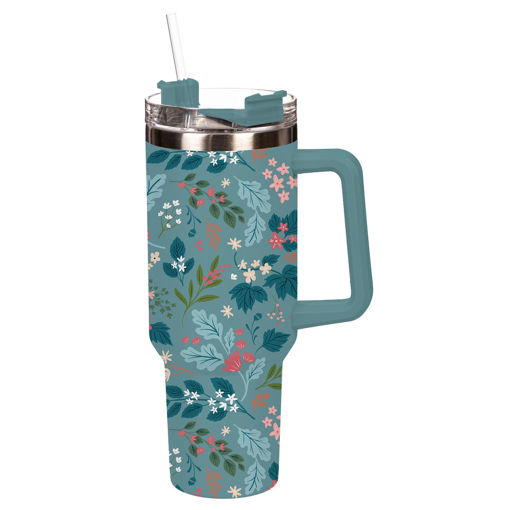 The Bursting Botanicals Tumbler is a stylish 30oz stainless-steel cup featuring a vibrant floral design. Perfect for everyday use, it includes a convenient straw and comes in a gift-ready box.