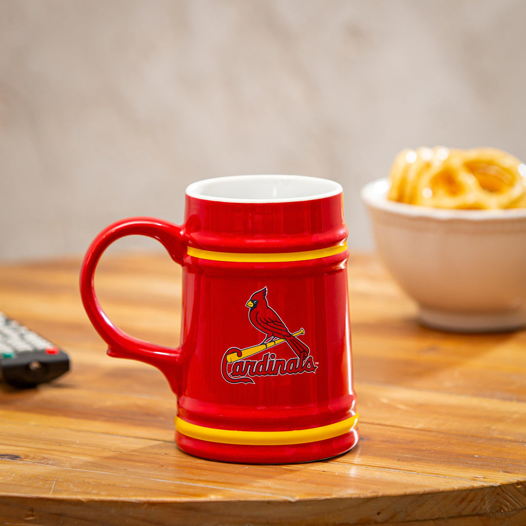 Celebrate your favorite baseball team with this vibrant St Louis Cardinals Ceramic Stein Cup, perfect for any fan's collection. This 24oz stein features a bold red design with the Cardinals logo, ideal for enjoying your favorite beverages.