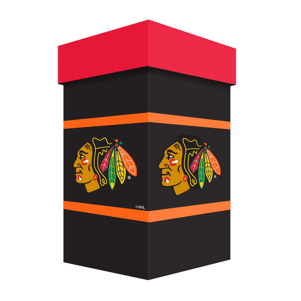 - Features Chicago Blackhawks logo, ideal for NHL fans.