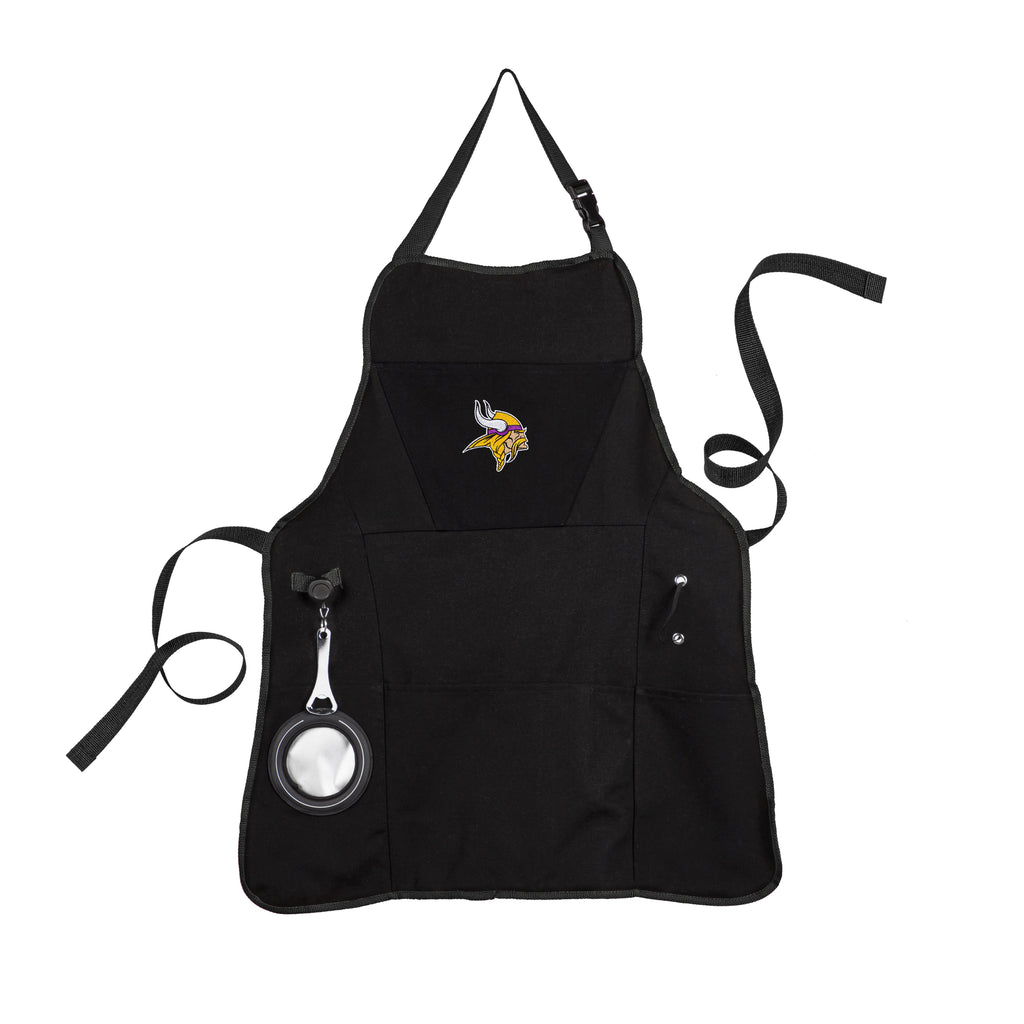 Show off your team spirit while cooking with this stylish Minnesota Vikings grill apron, featuring durable black fabric and convenient pockets.