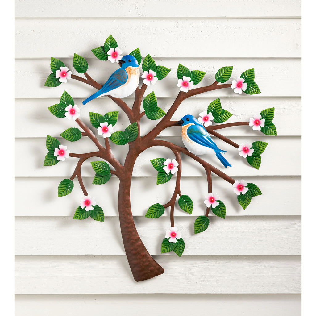 Enhance your living space with the captivating Indoor/Outdoor Bluebird Heart Tree Wall Art. Measuring 24.5 inches in width and 25.5 inches in height, this exquisite piece showcases a beautifully crafted tree adorned with vibrant bluebirds and delicate pink flowers. Perfect for both indoor and outdoor settings, this wall art adds a touch of nature and elegance to any environment. The intricate design and durable material ensure it remains a stunning focal point in your home or garden.