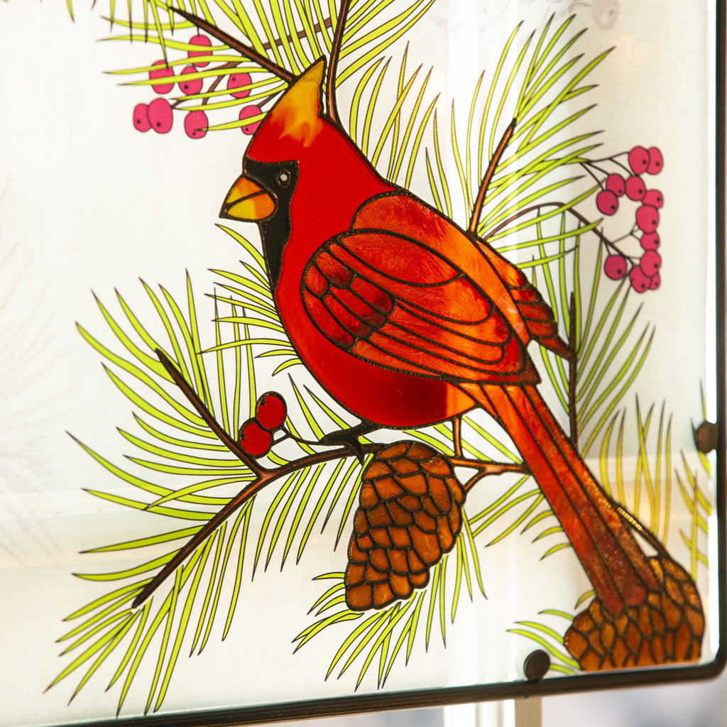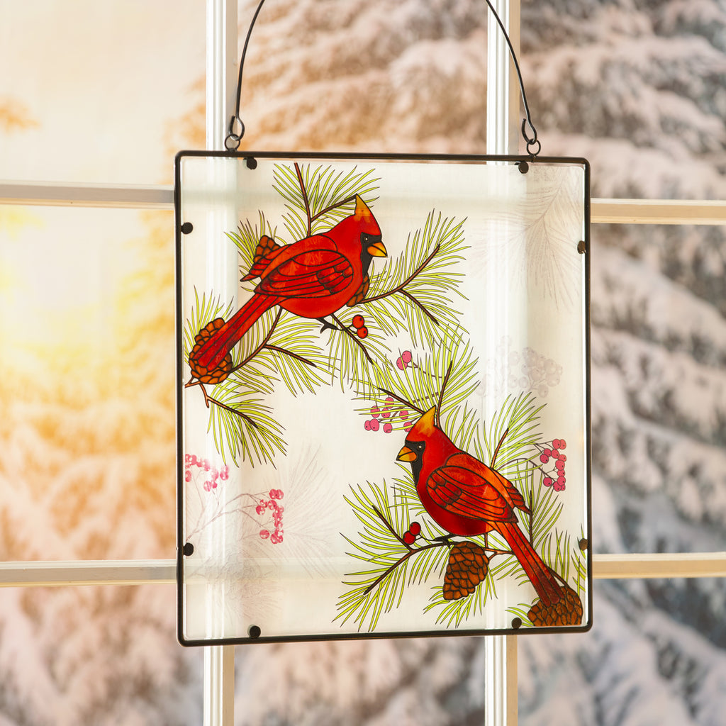 Enhance your home or garden with the Winter Cardinal Stained Glass Wall Art, a breathtaking piece that captures the beauty of nature. Measuring 16 inches by 16 inches, this delicate glass panel features vibrant red cardinals perched among lush pine branches, perfectly encapsulating a serene winter scene. Ideal for both indoor and outdoor settings, it adds a touch of elegance and warmth to any space. The durable construction and vivid colors make it a standout piece for seasonal décor, bringing the peacefulness of nature into your living space.
