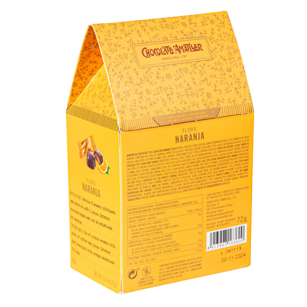 - Contains 72g of premium dark chocolate with a citrus orange filling.
