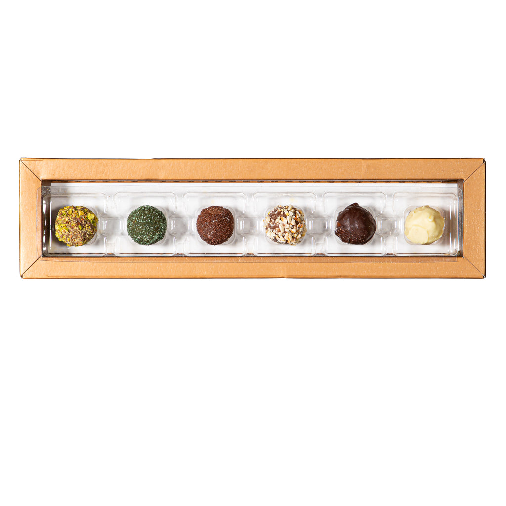 Indulge in a delightful assortment of gourmet truffles, perfect for gifting on Valentine's Day. This elegant box contains a selection of premium chocolate truffles in various flavors.
