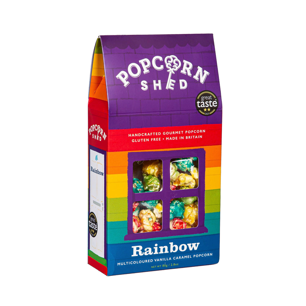 Indulge in a burst of flavors with Popcorn Shed Rainbow Popcorn, featuring multicolored vanilla caramel popcorn that is perfect for gifting or everyday snacking.