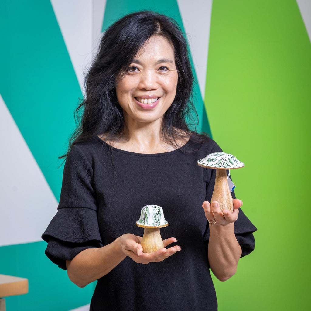 Enhance your space with the Olive Oasis Mushroom Wood Table Decor Set, featuring a charming mushroom design with a natural wood finish and a leaf-patterned top.