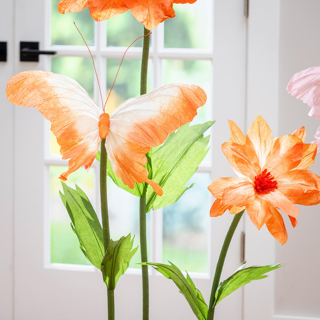 Enhance your home decor with these exquisite artificial peony flowers and butterfly accents. Perfect for everyday display, these paper-crafted pieces add a touch of elegance to any space.
