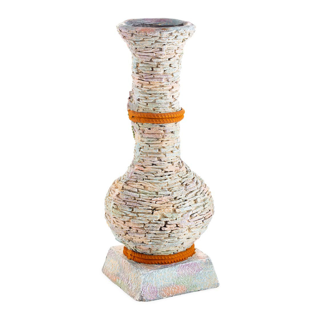 This Stacked Faux Rock Vase features a non-watertight design with a charming floral rope accent, perfect for adding a decorative touch to any room. Its unique rock texture provides a natural and rustic aesthetic.