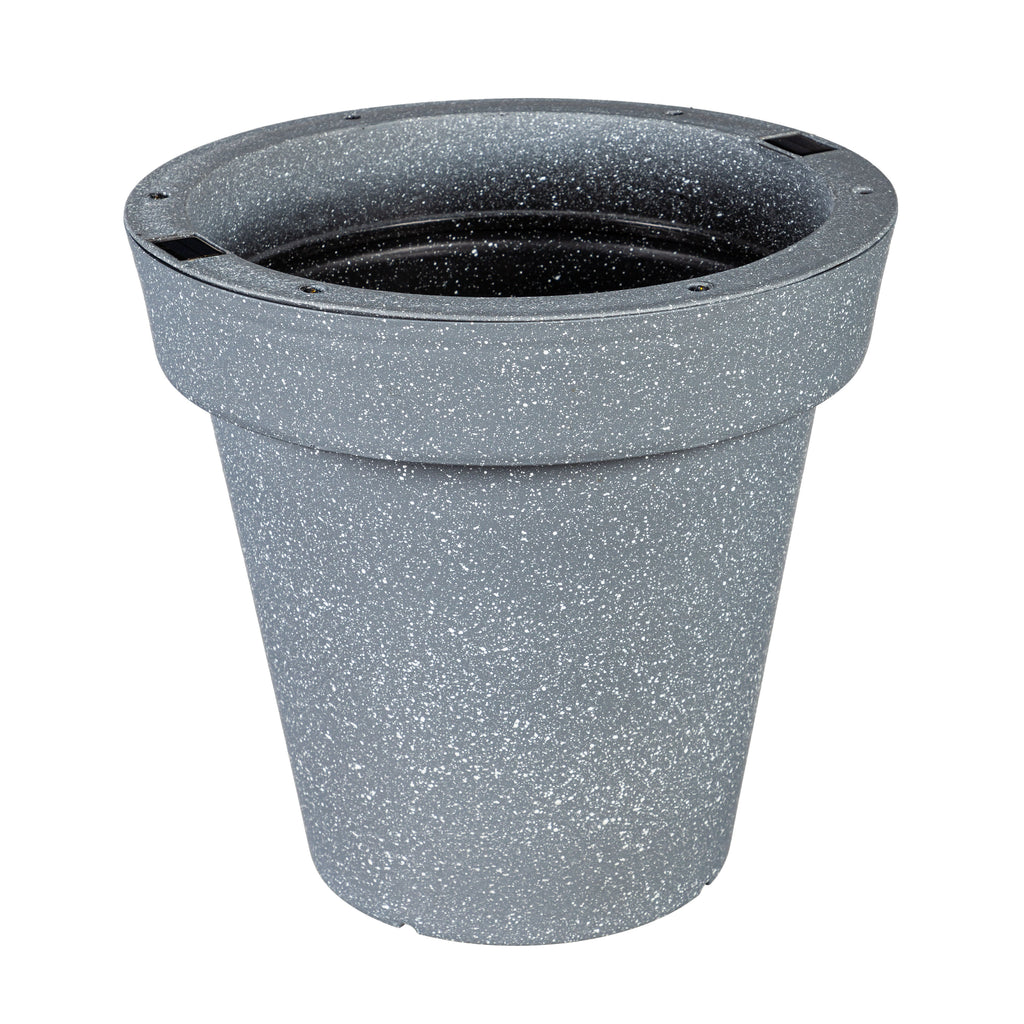 Enhance your garden with this 16-inch solar round planter, featuring a sleek stone finish that adds elegance to any outdoor space.