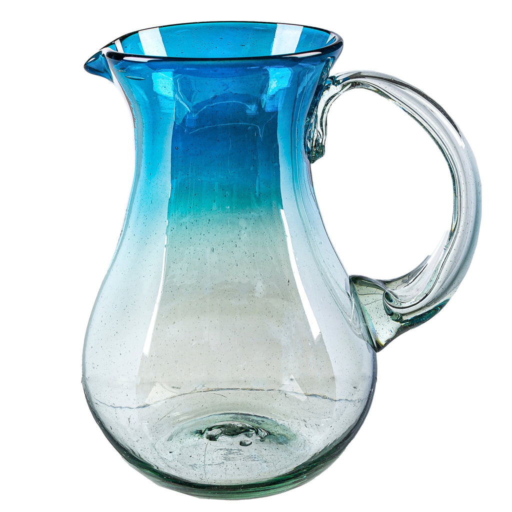 The Aqua Luster Pitcher features a graceful design with a captivating gradient of blue hues, perfect for serving beverages in style. Its elegant form adds sophistication to any table setting.