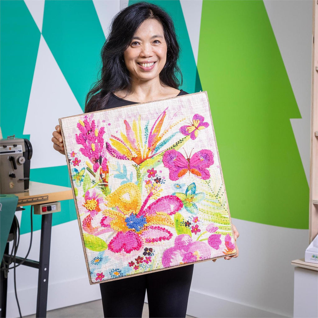 Transform your living space with the vibrant Textile Pastels of Nature Wall Décor. Measuring 18.5" L x 20.5" H, this striking piece brings the lively essence of a garden into your home. The intricate embroidery showcases vivid flowers and butterflies, creating a stunning visual impact. Ideal for adding a burst of color to any room, this wall art is perfect for enhancing your decor with a touch of nature's beauty. Its textile design adds texture and depth, making it a captivating focal point in your interior.