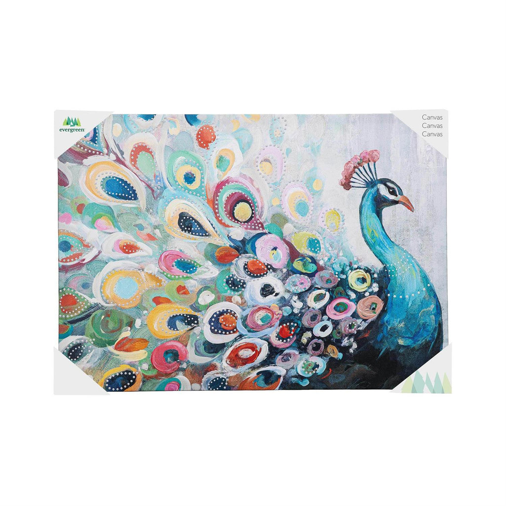 Elevate your home décor with this exquisite Canvas Wall Décor featuring a vibrant peacock design. Measuring 28 inches in length and 20 inches in height, this artwork is perfect for adding a touch of elegance to any indoor space. The colorful design showcases a peacock with an array of vivid hues, enhancing the visual appeal of your living room, bedroom, or office. Crafted on high-quality canvas, this piece promises durability while maintaining its artistic charm. Its lightweight structure makes it easy to hang, instantly transforming your walls into a gallery of beauty and style.