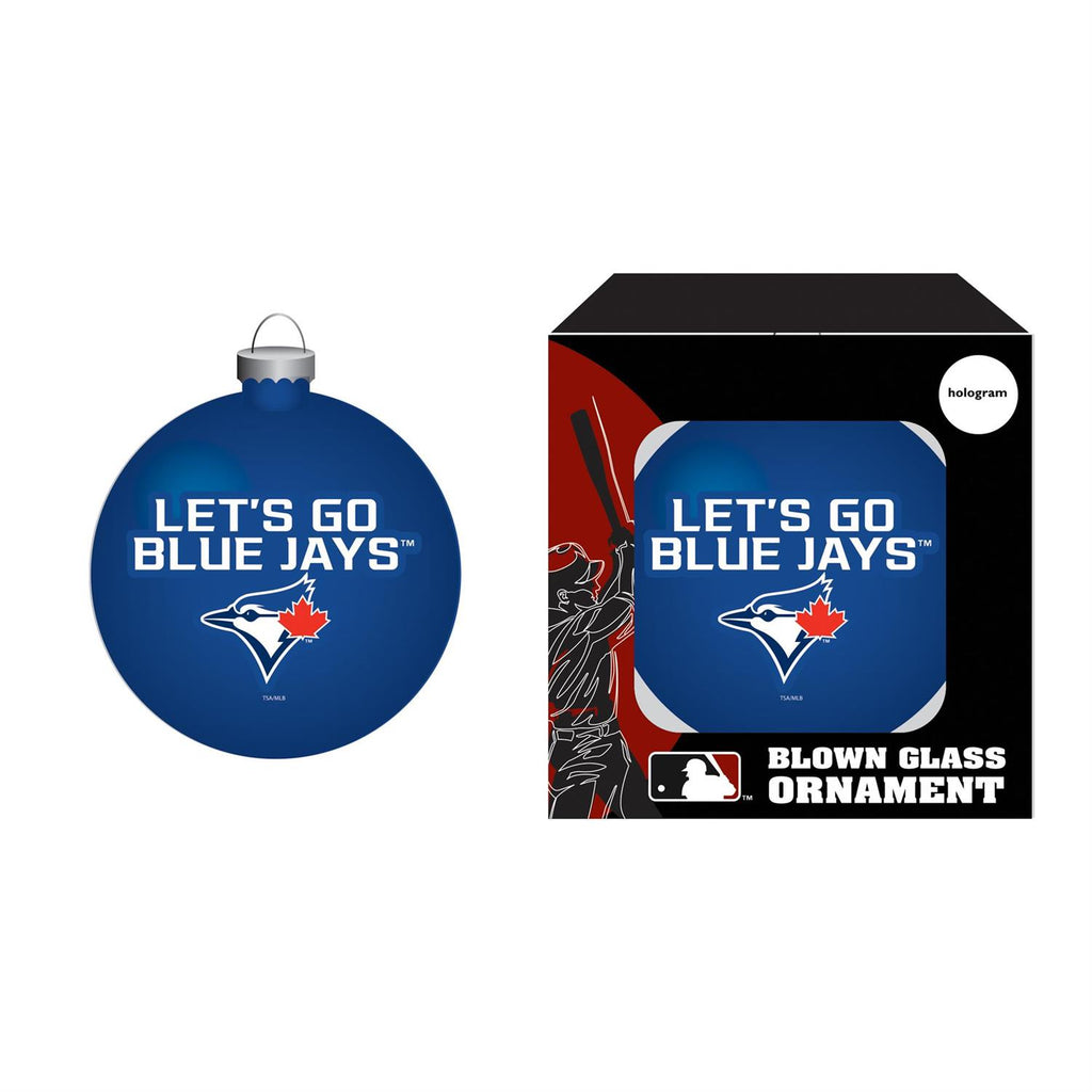 Celebrate your love for the Toronto Blue Jays with this exquisite blown glass ornament. Perfect for devoted fans, this ornament features the team's vibrant colors and iconic logo, making it a standout addition to your holiday décor. Measuring 3.14 inches in both length and width, and 3.5 inches in height, it is ideally sized to add a touch of team spirit to your Christmas tree. The high-quality glass construction ensures durability and a brilliant shine, reflecting your passion for the game all season long.
