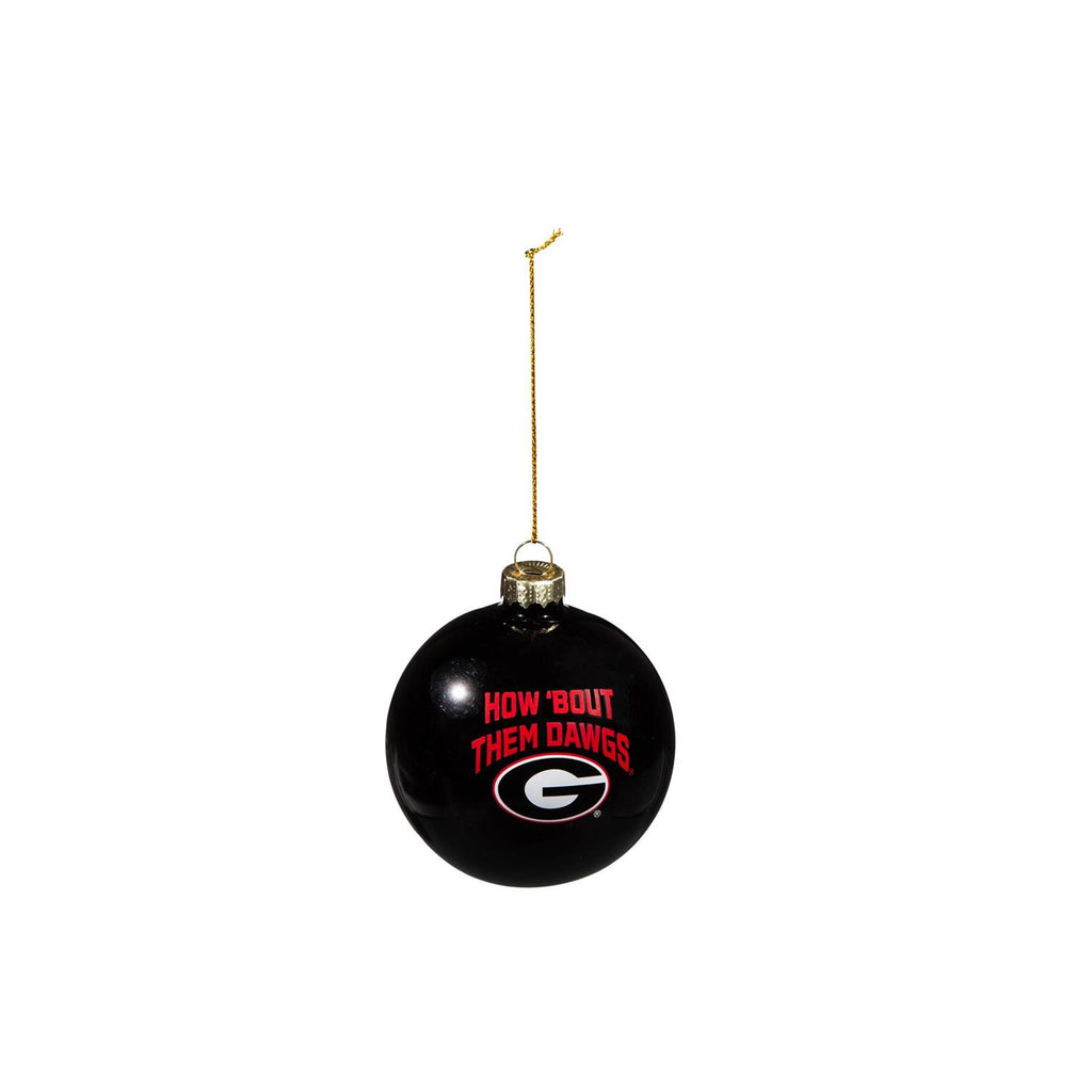 Celebrate your passion for the University of Georgia with this exquisite blown glass ornament. Featuring a bold black design with the iconic Georgia logo and phrase, it's a perfect tribute to your school spirit. Measuring 3.14 inches in both length and width and 3.5 inches in height, this ornament is an ideal addition to your holiday décor or year-round display. Crafted with care, it captures the essence of Bulldog pride and makes a thoughtful gift for alumni and fans alike. Elevate your festive decorations and showcase your loyalty in style.