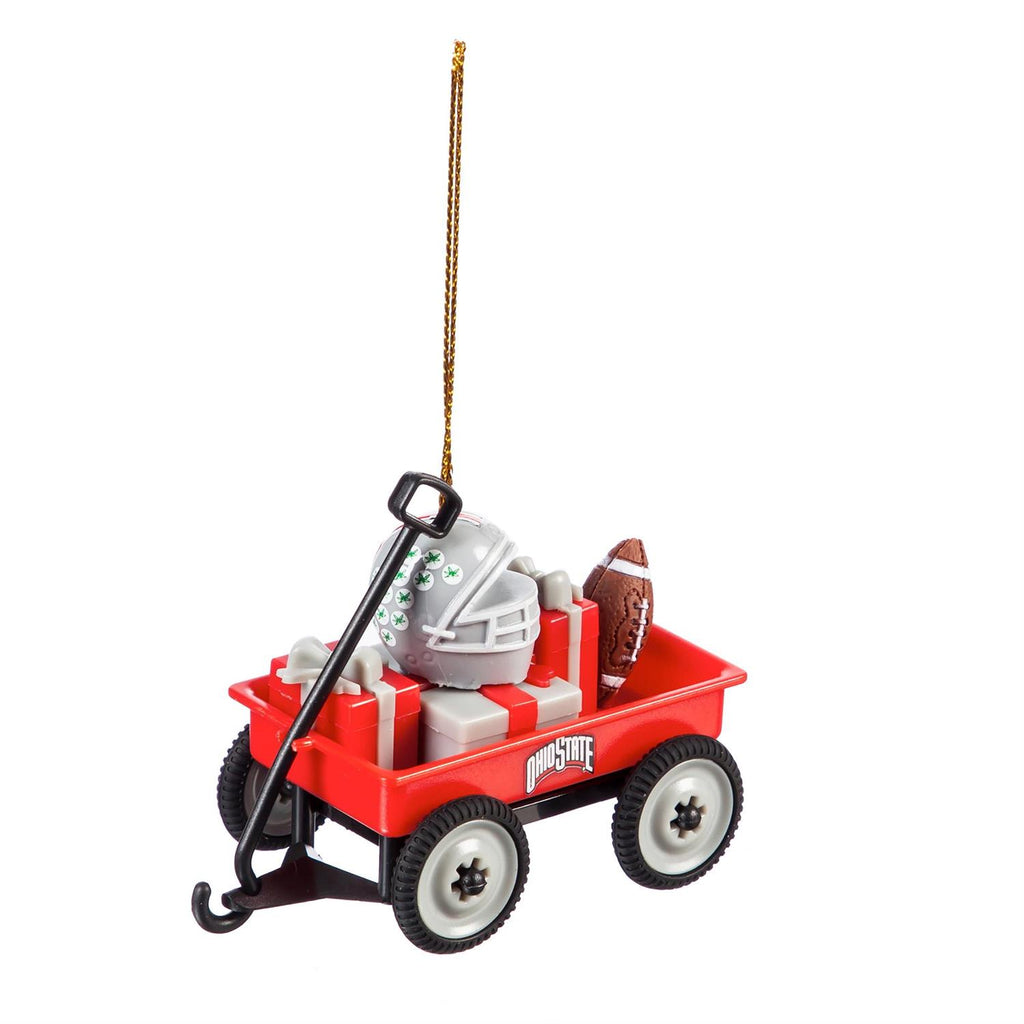 Celebrate your Ohio State pride with this charming Team Wagon Ornament. Perfect for fans, this festive decoration features a miniature red wagon loaded with a football and presents, all adorned with Ohio State spirit. Measuring 3.13 inches long, 1.75 inches wide, and 2.5 inches high, it’s ideal for adding a touch of team loyalty to your holiday décor. Whether hanging on your Christmas tree or displayed year-round, this ornament is a must-have for any Buckeyes supporter.