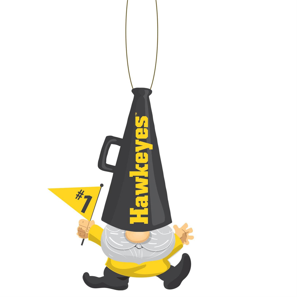Celebrate your Hawkeye pride with the University of Iowa Gnome Mega Ornament. This charming ornament features a spirited gnome donning the iconic black and gold colors, complete with a megaphone hat proudly displaying 'Hawkeyes'. Measuring 1.97 inches in length, 2.17 inches in width, and 2.95 inches in height, it's the perfect size to adorn your holiday tree or showcase your school spirit year-round. Made for fans who want to add a touch of whimsy to their décor, this ornament makes a great gift for students, alumni, and supporters alike.