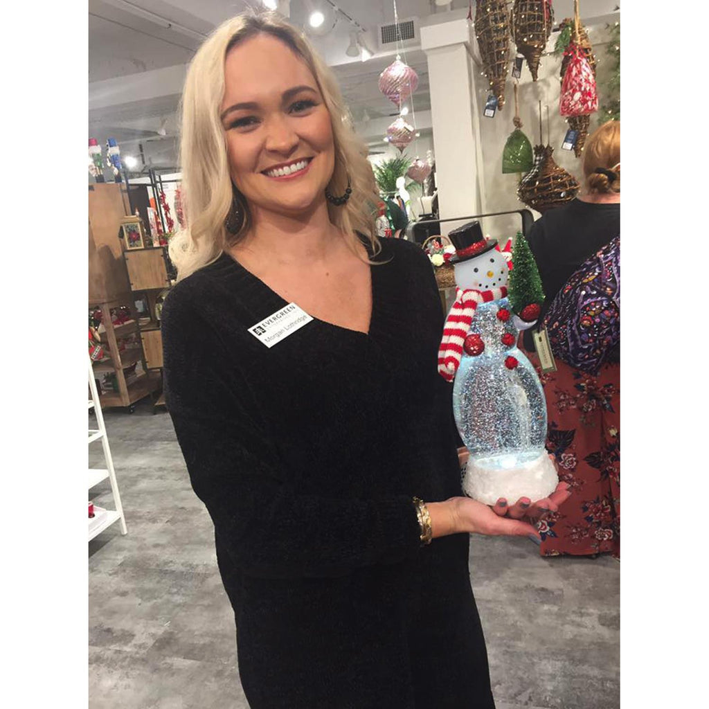 Add a touch of whimsical charm to your holiday décor with this 13" LED Spinning Water Snowman Tabletop Décor. The snowman, adorned with a festive red and white scarf and holding a miniature Christmas tree, stands atop a snowy base. This captivating piece lights up with an LED glow, enhancing the swirling water effect inside. Perfect for mantels, side tables, or anywhere you want to spread holiday cheer. Its compact size makes it an ideal addition to any room, bringing a playful yet elegant vibe to your winter decorations.