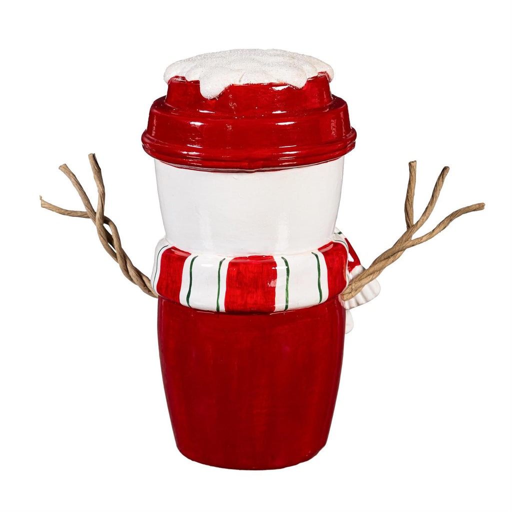 Add a touch of festive charm to your holiday décor with the Baking Spirits Bright Snowman Cup. Standing at 8.25 inches tall, this adorable snowman is crafted from durable resin, making it a delightful addition to any tabletop. Featuring a cheerful snowman design with a vibrant red and white scarf, twig arms, and a cozy hat, it brings warmth and joy to your seasonal celebrations. Perfect for adding a whimsical touch to your winter gatherings, this snowman figurine is sure to spread holiday cheer.