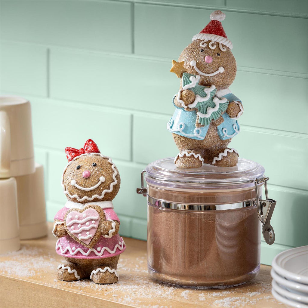 Add a festive touch to your holiday table with the Baking Spirits Bright Table Décor Gingerbread Resin set. Standing at 6.5 inches tall, these charming gingerbread figures bring a whimsical flair to your seasonal décor. Crafted from durable resin, each piece is intricately detailed with colorful icing and holiday-themed accessories. Perfect for displaying on a dining table, mantel, or kitchen counter, they capture the joy and warmth of the holiday season. Their compact size makes them ideal for small spaces, adding a delightful holiday cheer to any nook.